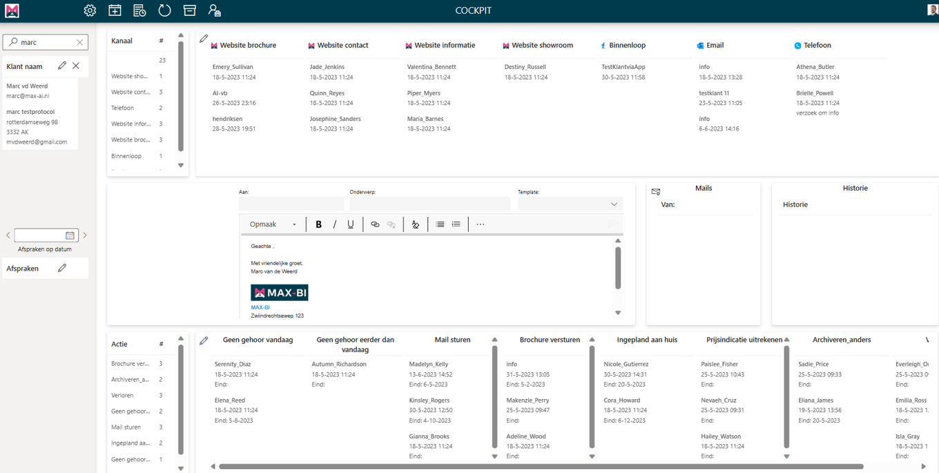 Alle verkopers hebben hun eigen werklijst die wordt samengesteld uit alle acties en afspraken op hun naam.